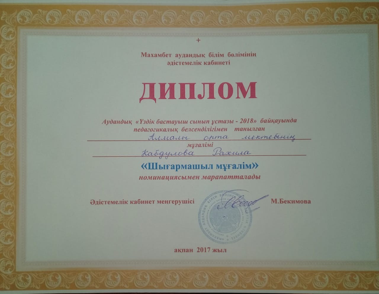 Кабдулова Рахила Рахымжанқызы ІІ санатты бастауыш сынып мұғалімі
