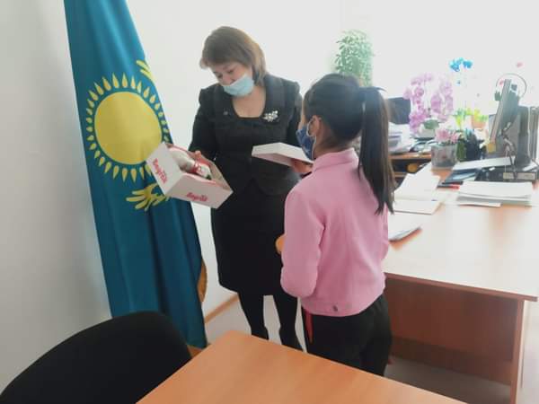 "Қайырымды істер марафоны" жалпыұлттық жобасы аясында мүмкіндігі шектеулі бір оқушының еміне қаржылай көмек көрсетіп және көп балалы үш отбасының үш оқушысына аяқ киіммен көмек көрсетілді.